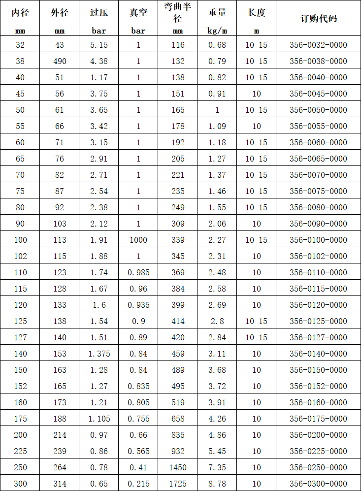 耐磨损抽吸输送管; 超重型,内壁平滑,真空防爆